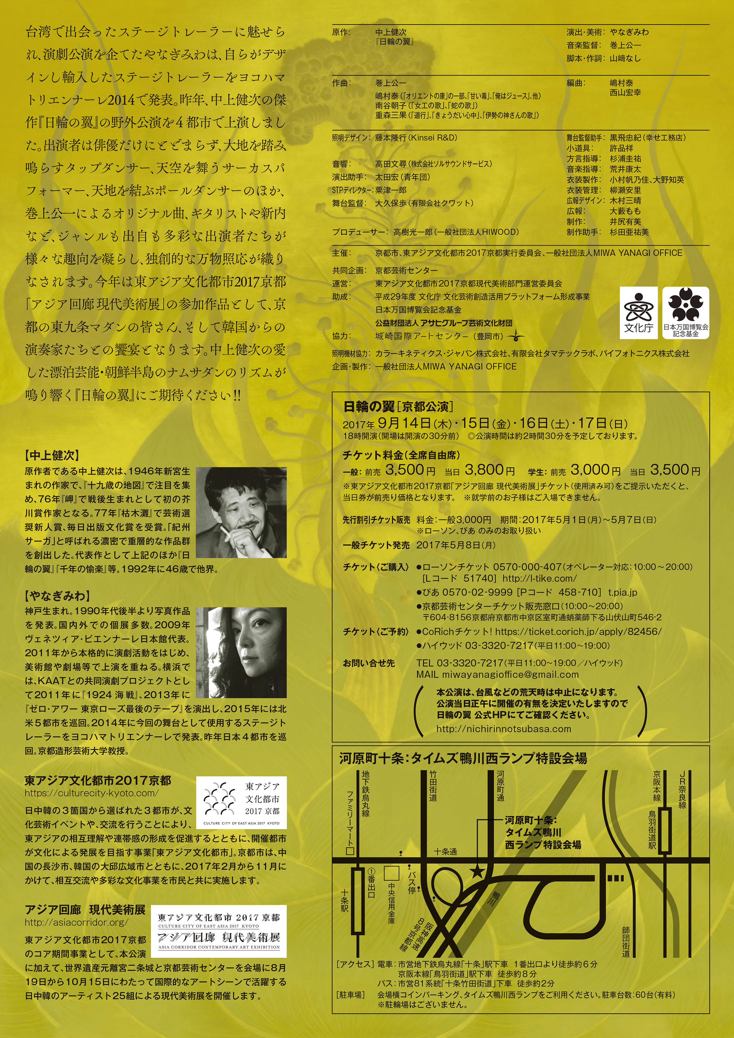 プレス情報 下記は2017年京都公演のものです。 2019年神戸公演につきましては、近日中に公開予定です。 ※画像をクリックすると大きくご覧いただけます。 チラシおもて面 チラシ中面 チラシ裏面 プレスリリース